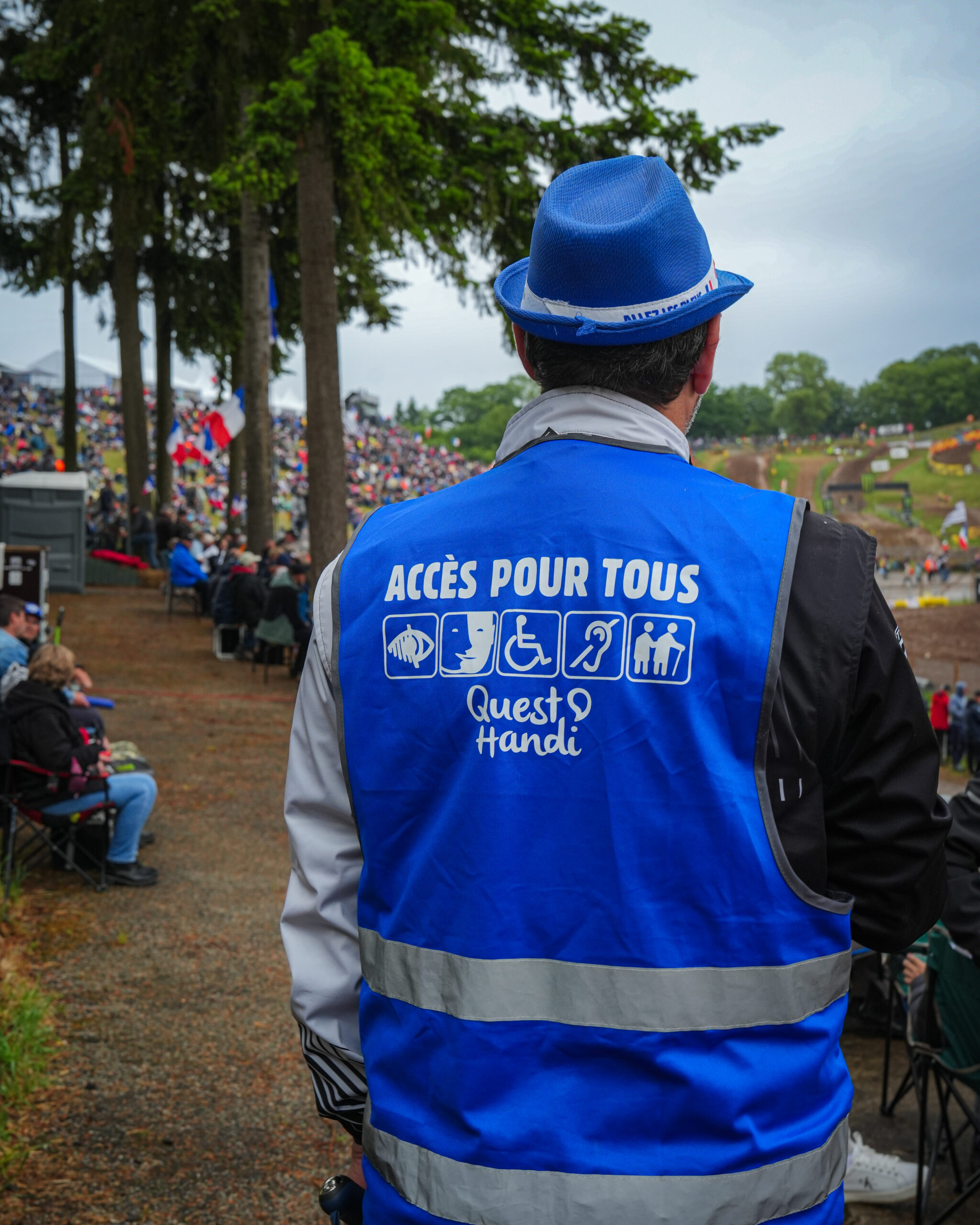 À l’occasion du Motocross des Nations 2026, le Moto Club d’Ernée renouvelle son engagement en faveur de l’accueil des personnes en situation de handicap, en partenariat avec Quest’ Handi. Une plateforme dédiée garantit une vue imprenable sur la piste et dispose de sanitaires adaptés.