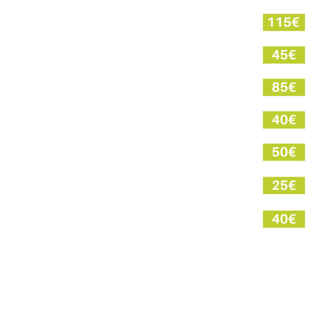 L’accès paddock est OFFERT pour les personnes à mobilité réduite détenteur d’un billet DIMANCHE, SAMEDI ou WEEK-END.